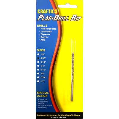 Craftics 5/32 in plastic drill bit, these drill bits for plastic produce clean, chip-free holes in acrylic and other plastics. Excellent for hand drills. 90 deg point, 0 deg rake.