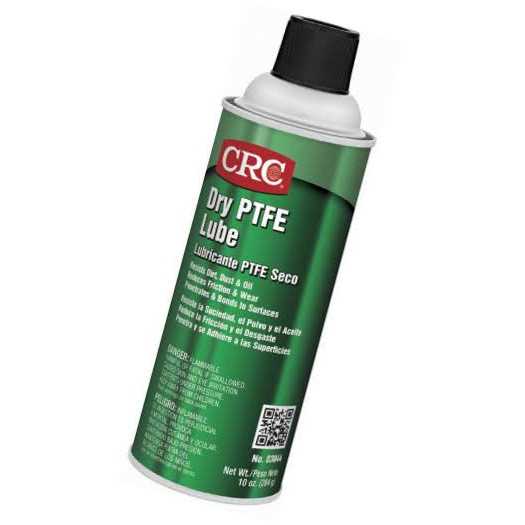CRC dry PTFE lube is a multi-purpose PTFE-based dry film lubricant that utilizes DuPont technology. It penetrates and bonds to metal wood rubber plastic and most surfaces. The lubricating micro-thin film features an ultra-low coefficient of friction that prevents sticking and wear. It is ideal for sliding mechanisms and light load lubrication in dusty environments. Dry PTFE lube repels dirt dust and oil to maintain cleaner operating conditions and will not run pool or contaminate in-process materials. Recommended for use as a lubricant on hinges locks catches pulleys conveyors machine parts chutes and slides coin mechanisms window guides drawers rollers control buttons switches and electrical wires and harnesses. Ideal for use in applications where parts are in a dusty environment. Remains stable between -40 and 450 degrees F. Will not melt freeze or wash-off. 360 degree valve. Product can be sprayed from any position – even upside down. Offers effective performance while complying with the EPA regulations on the use of ozone depleting chemicals. Material safety data label. Provides instant access to current safety information should an accident or OSHA inspection occur. Helps comply with OSHA hazard communications standard 29 CFR 1910.1200.