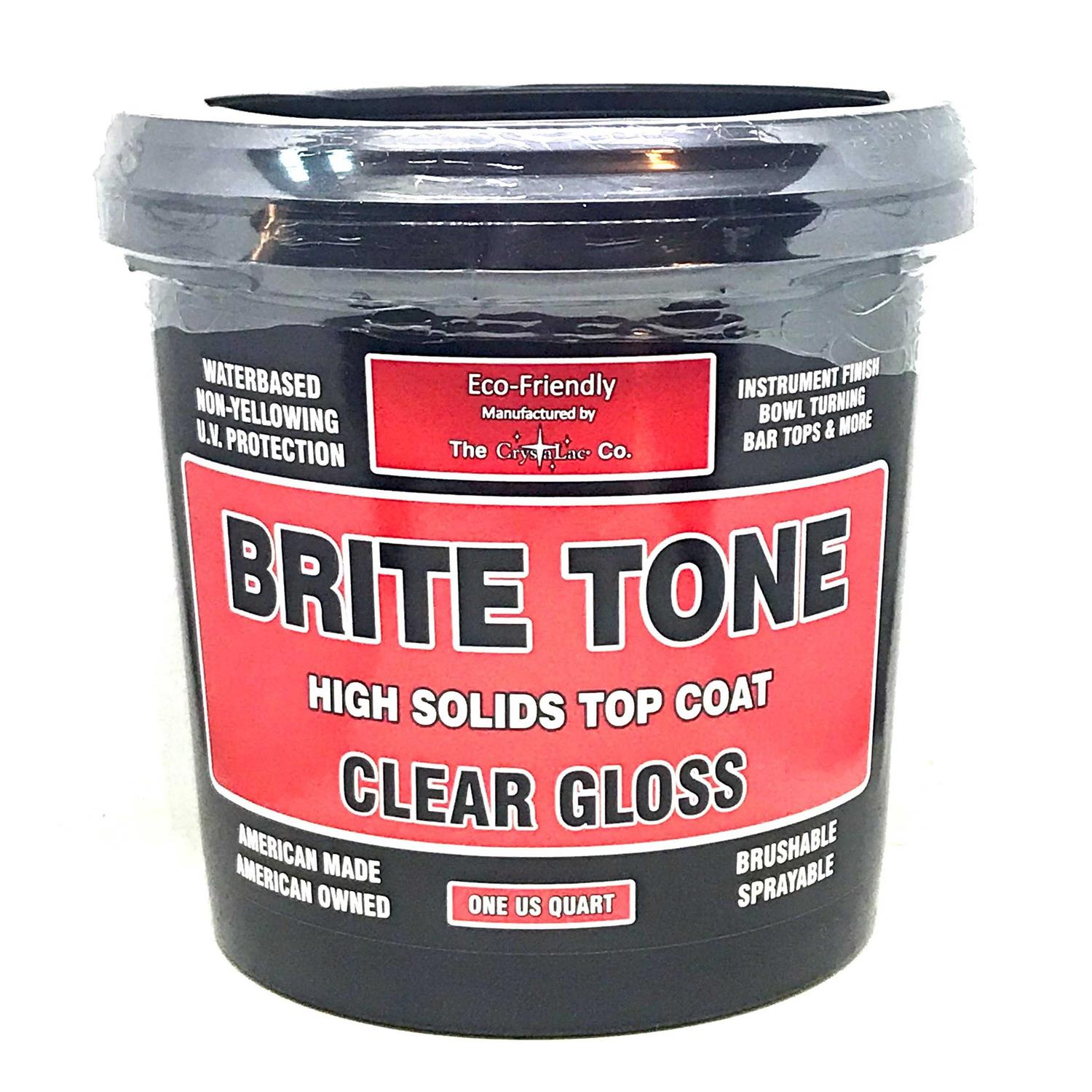 Easy to Use & Water Clean-up Brushable and Sprayable Non Yellowing & Environmentally Safe Super Hard & Crystal Clear Protective Finish Brite Tone is a High Solids, Waterbased Polyurethane that will build with less coats than traditional top coats. It self levels and leaves a super hard, Crystal Clear Top Coat. Excellent for use on Instruments, Tumblers, Bar Tops, Furniture and more.