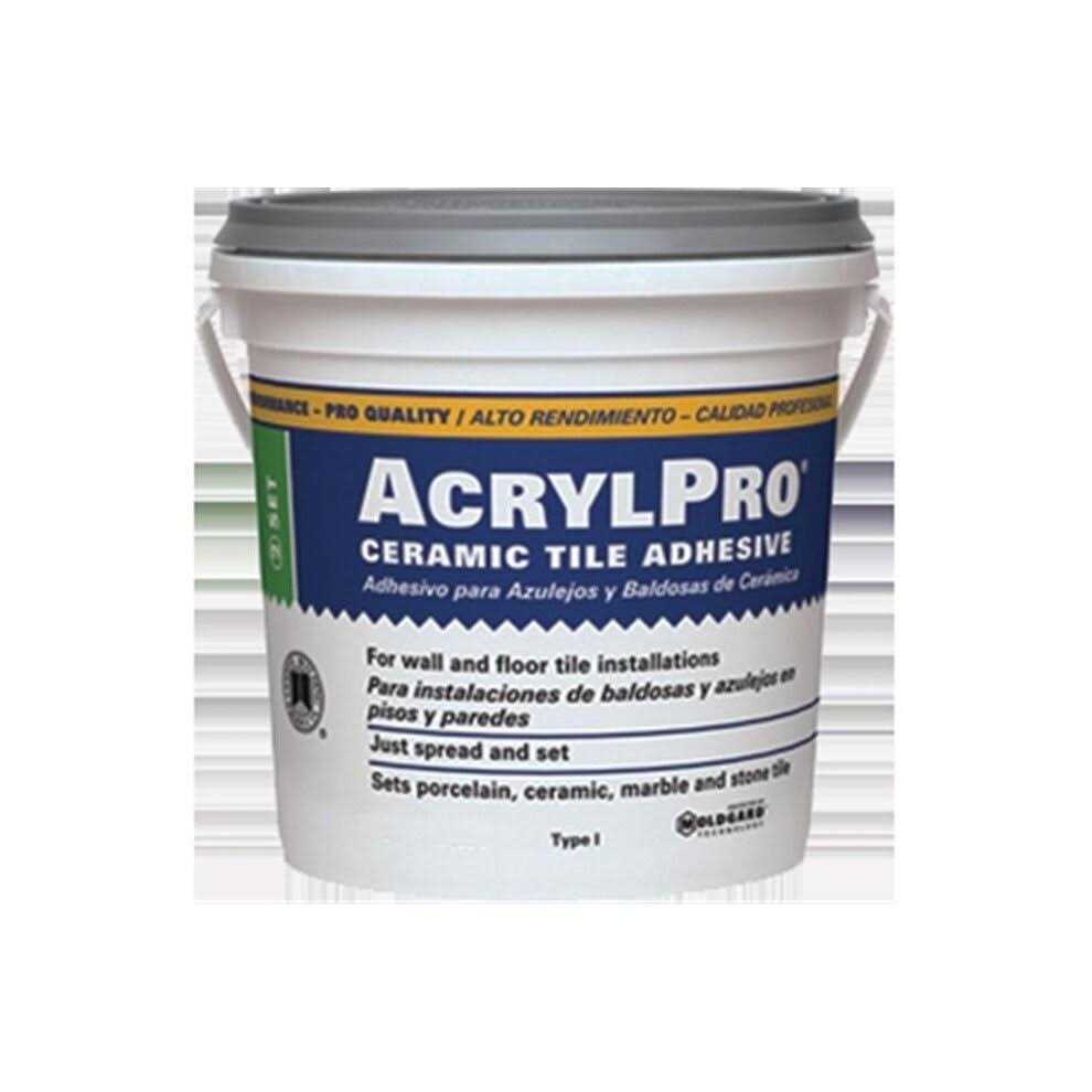 Features Multi-purpose white, nonstaining high-performance mastic for installing ceramic tile Ceramic mosaic, and quarry tile over gypsum wallboard, exterior grade plywood, concrete, plaster, glass mesh mortar units, and existing ceramic tile. Recommended for use in interior floors and walls and on interior surfaces exposed to prolonged water exposure such as tub enclosures, showers, countertops. Size – 3.5 gallon.