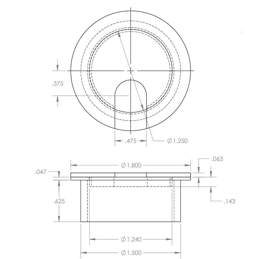 Organize your cables with professional desk and cabinet cable-pass through grommets. Cut hole to size specified and either press or glue into place. BR BR Specifications: UL LI Cut-Hole Size Required: 1.5. BR LI Inside Usable Diameter: 1.25 BR LI Grommet Insert Width: 1.5 BR LI Grommet Lid Width: 1.9 BR LI Grommet Depth: .625 BR LI Size Tolerances May Vary /UL BR BR Important Installation Note: The Grommets are manufactured to be slightly less that the hole size. 1.460 inches – or approx .04 inches LESS than the hole size of 1.5inches. This difference is by design to allow for the grommet to be inserted into the CUT hole size. These grommets after inserted into a cut hole are intended to move freely. If you need a TIGHT fit a small amount of glue or silicon may be needed.