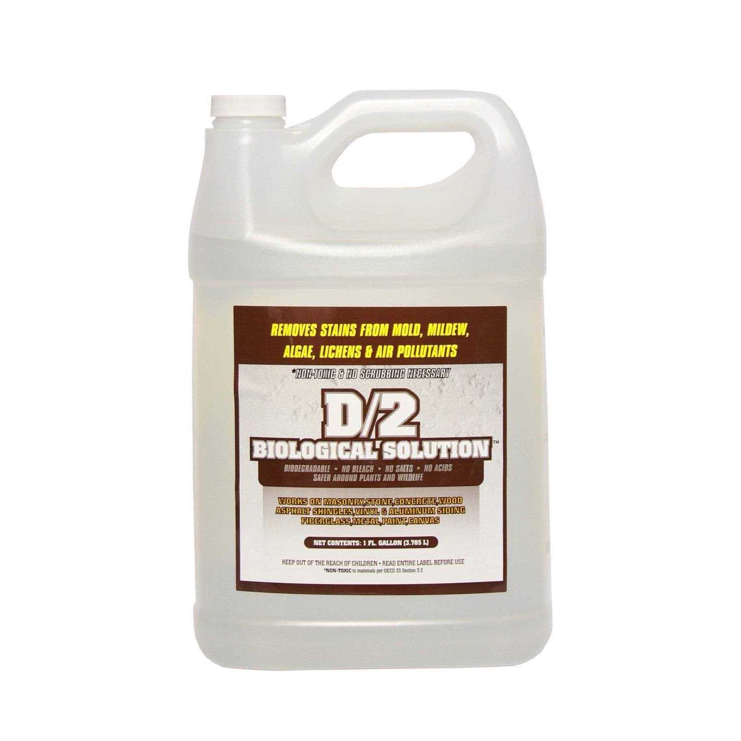 D2 Biological Solution is a biodegradable, easy-to-use liquid that removes stains from mold, algae, mildew, lichens, and air pollutants. It is effective on marble, granite, limestone, brownstone, travertine, masonry, terra cotta, concrete, stucco, wood, and other architectural surfaces including monuments, sculpture, gravestones, headstones, vinyl, and aluminum siding. A contact time of only 10 to 15 minutes followed by scrubbing with a soft nylon or natural bristle brush will loosen most biological and air pollutant staining. It is safe to use and won’t deposit harmful residues! D2 cleaner has been successfully used to remove staining from a variety of surfaces including natural stones such as marble, granite, limestone, sandstone, and slate, masonry surfaces such as brick and cast stone, concrete, wood, aluminum and vinyl siding, and canvas. It works D/2 has been used successfully to clean millions of buildings and monuments. From the White House to Arlington Cemetery, D/2 is trusted to work and keep on working when results matter.