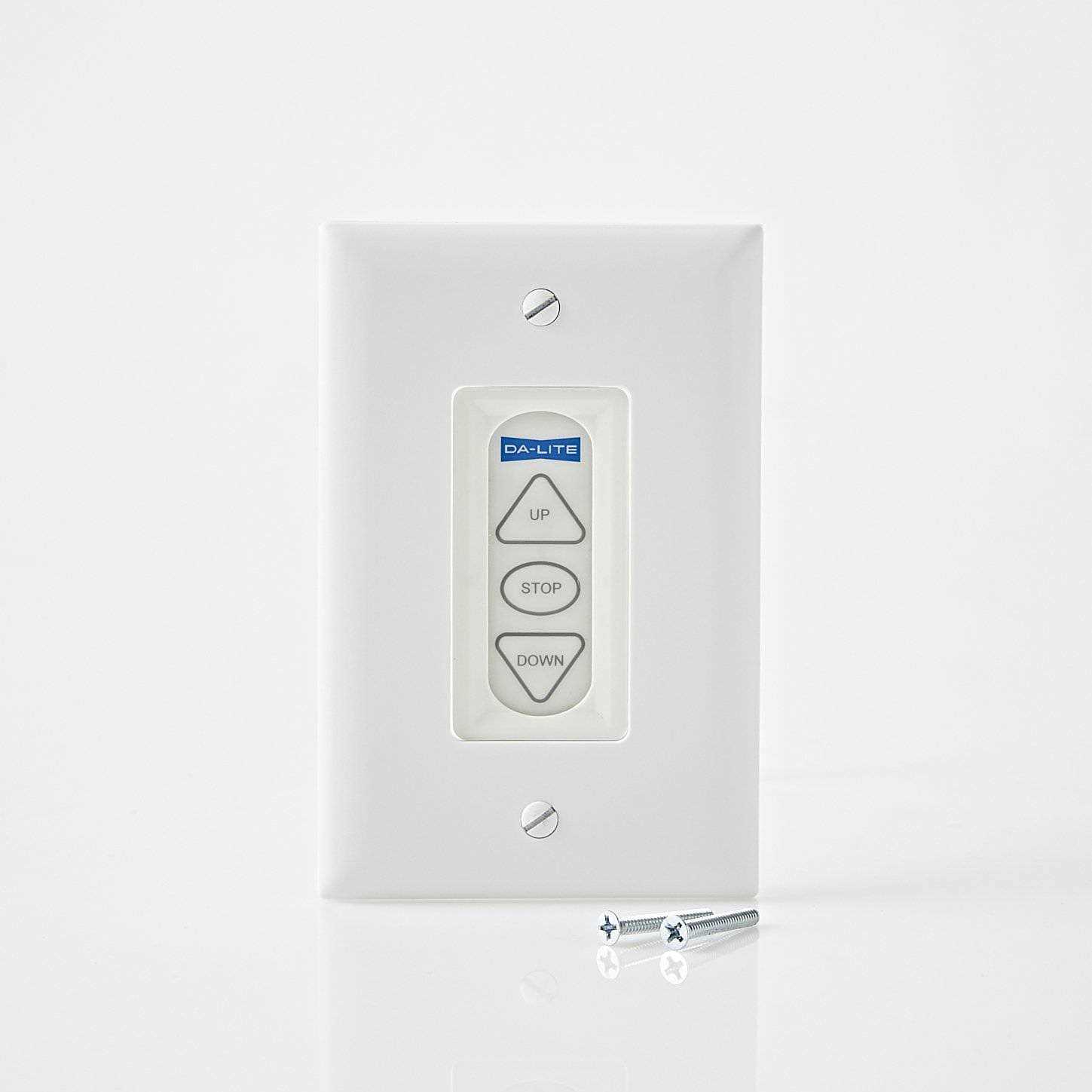 Raises/Lowers Screen, Three-Button Operation, Single-Gang Design, For 110 VAC Power. Use the white Da-Lite Three-Button Low Voltage Control Switch to raise and lower your screen and to stop it in place. Its three buttons are designed for ease of use and it runs on 110 VAC power. The switch features a single-gang design for ease of installation.