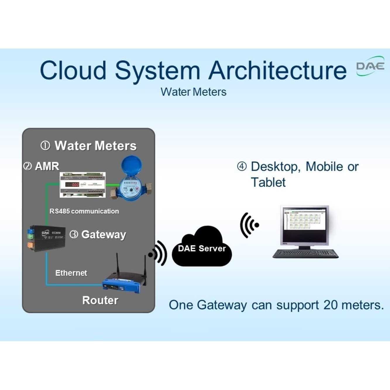 Horizontal Inline mount with dial facing upwards. For installing vertically with water flowing upwards, please refer to DAE V-50P. Or DAE VM-50P, DAE PVM-50 which can be installed in any position, vertically or horizontally, water flowing downwards or upwards, dial facing upwards, downwards or side-way. Not for use of pit application. For outdoor use, please refer to DAE MJ-50c, PD-50. For upgraded AS130U-50P, Cloud Metering available (2nd picture) with DAE CC2030 Gateway. CC2030 will collect water usage from DAE AMR (for 16 meters) or AMR130AN (for 1 meter) and send them to cloud server through Ethernet. With PC, cell phone, the landlords can see real time data, monthly water usage & billing reports to their tenants. If there is abnormal usage (ex. Broken piping), an email alert will be sent to your cell phone. For upgraded AS130U-50P, ready for use with CO-10 (Electronic Pulse Counter) or CO-10 KIT – An inexpensive remote reading solution (6th picture). Can also use with DAE AMR130 (Auto Meter Reading Module for single water meter) and AMR (for 16 water meters) for remote reading (5th picture). Factory Calibration Certificates available. DAE Controls LLC is a Minority Business. Please feel free to get the NMSDC Minority Supplier Certificate from DAE Controls Website. Accuracy: +/-1.5% within normal flow as per AWWA Standard. Conforms to both AWWA and ISO 4064, for clean water only. Maximum Flow Rate: 15 GPM (3.4 m³/h), Normal Flow Rate: 7.5 GPM (1.7 m³/h), Minimum Flow Rate: 1/4 GPM (0.06 m³/h).