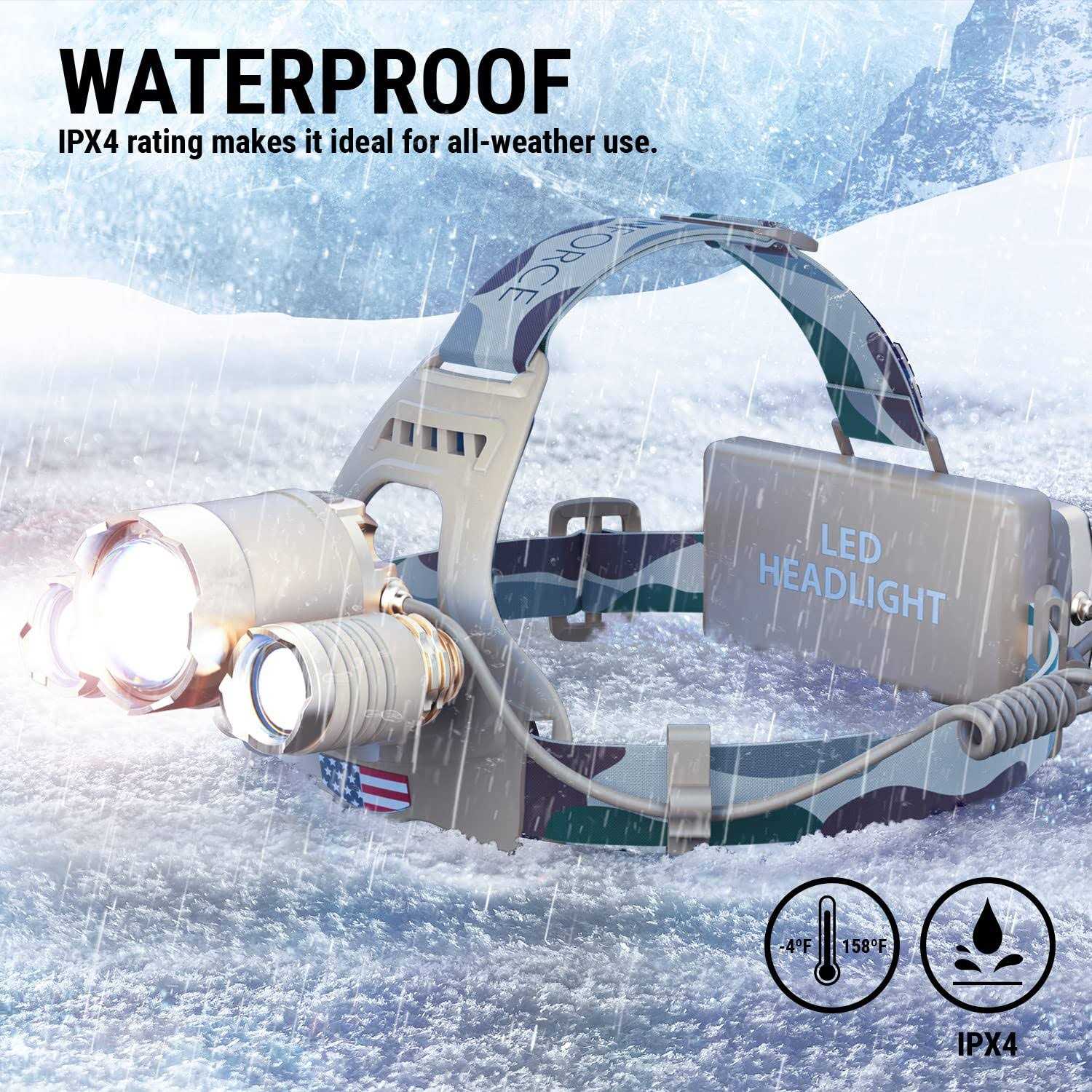 DanForce Camouflaged Headlamp Ultra Bright USB Rechargeable Head lamp. Tactical Head Flashlight Designed Especially for Hunting & Fishing. LED