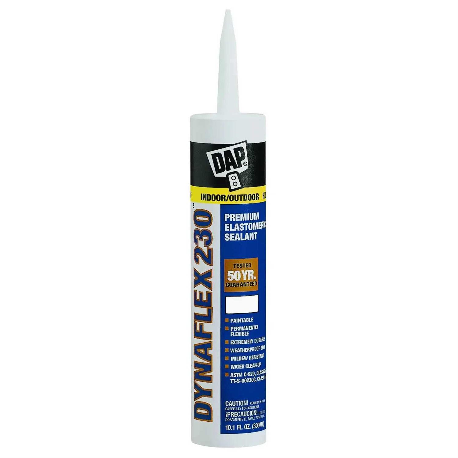 DAP DYNAFLEX 230 is a premium elastomeric latex sealant with silicone-like toughness. It combines outstanding durability, adhesion and flexibility with easy tooling, paintability, low odor & water clean-up. It is highly flexible to handle joint movement caused by variations in temperature and humidity without cracking. It provides a long-lasting, durable seal that is 100% waterproof and weatherproof. Ideal for sealing air leaks around windows, doors, siding, trim and baseboards to improve the energy efficiency of a home and reduce utility costs. Cured sealant is mold and mildew resistant. Lifetime Guarantee. Meets ASTM Specification C920, Class 25. VOC compliant.