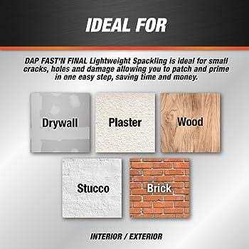 Lightweight formula spreads easier and dries faster than vinyl or powder compounds. Won’t crack, sag or shrink even on larger fills. Excellent for spot patching and repairing nail holes, cracks and dents in wood, plaster, drywall concrete, and many other interior surfaces. No. 12140: 1/2 pint.