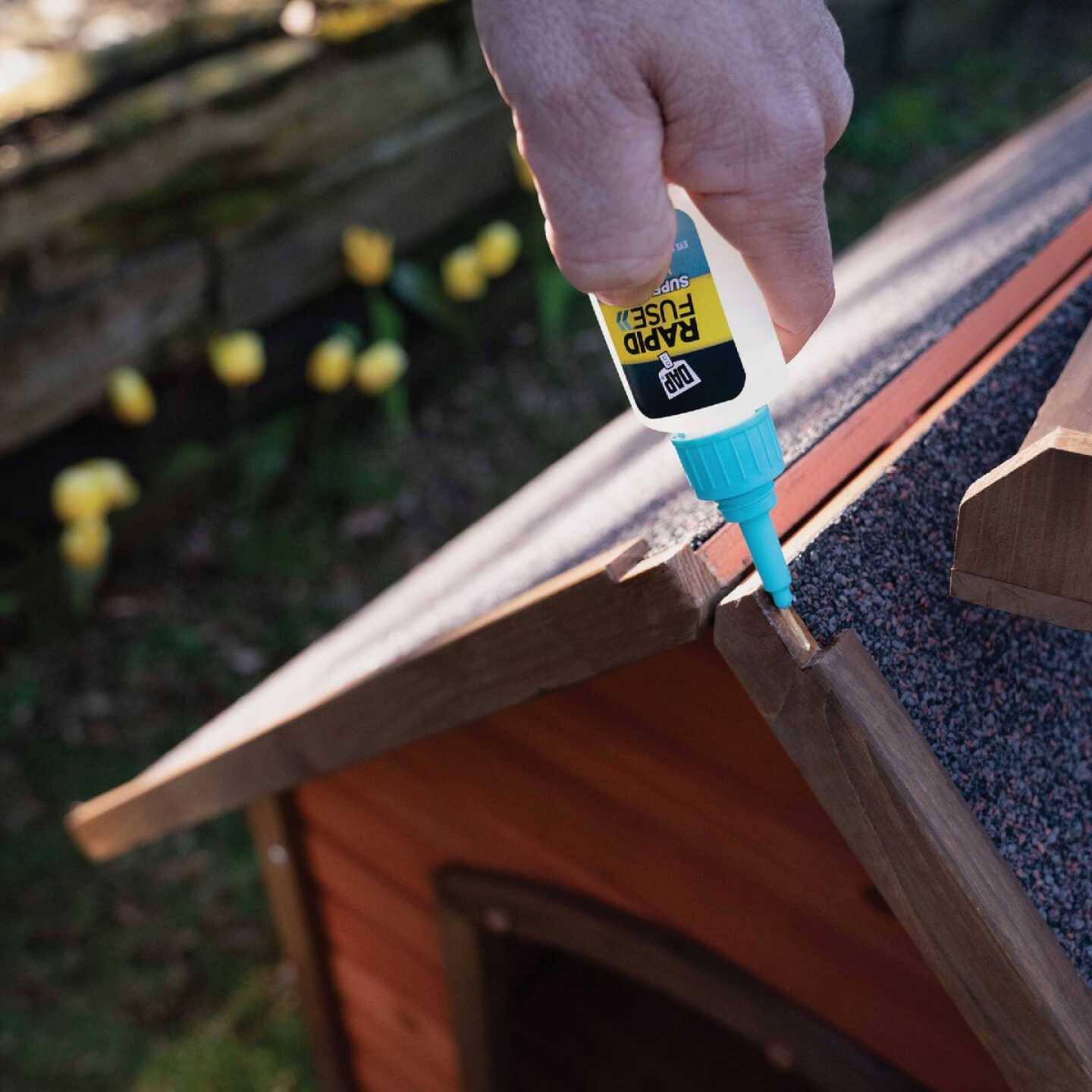 RapidFuse all-purpose adhesive provides a fast-setting, professional-strength, clear bond that is stronger than polyurethane glues and without the expanding foam or dripping glue. Bonds virtually everything including plastic, wood, rubber, metal, ceramics, glass, fabric, stone, tile and more. Sets in 30 seconds and cures in 30 minutes – no clamps required. 40 minute open time. Soap and water cleanup before cure, after cure use mineral spirits or scrape. Water resistant formula is ideal for both interior and exterior use.