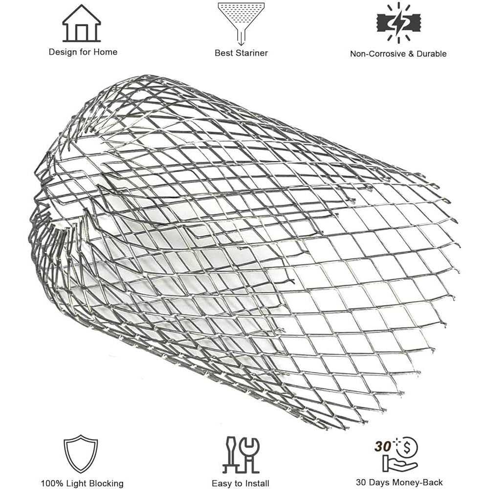 Size:Wide -3 inches, tall- 6 inches.The gutter leaf strainer suitable for resisting most blockages. Material:The gutter leaf guard made of corrosive, weatherproof and waterproof aluminium,durable and not easy to rust.. No more clogging: The aluminium downspout gutter guard stops leaves, seeds and other debris from blocking your gutter. You can easily make sure that your guttering system stays in perfect condition for longer without the need for costly repairs and constant unclogging.. Fits most gutters: Not quite sure about the size of your downspout holes? Dont worry. The 3 inch downspout mesh filter can be easily bent and molded to fit your gutter system. Perfect fits for 2.5 3.7 inch hole size. Suitable for outdoor, rooftop terrace and other ground water demand..,,Dele