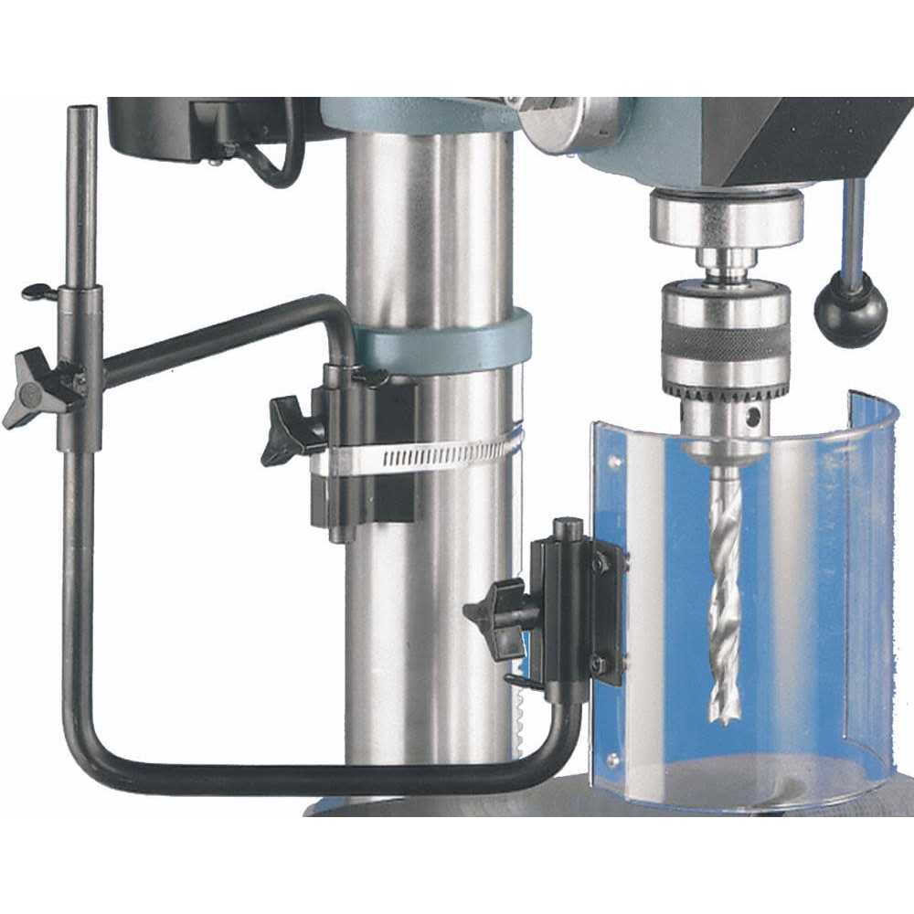 The Delta Drill Press Guard is a simple solution to adding a safety feature to your drill press to provide you a safer working environment. Designed to fit any drill press with a column diameter ranging from 1-1/2 in. to 3-11/16 in., this guard is quick and easy to install. Also easy to use, this guard swings out of the way for tooling installations and is simple to reposition.