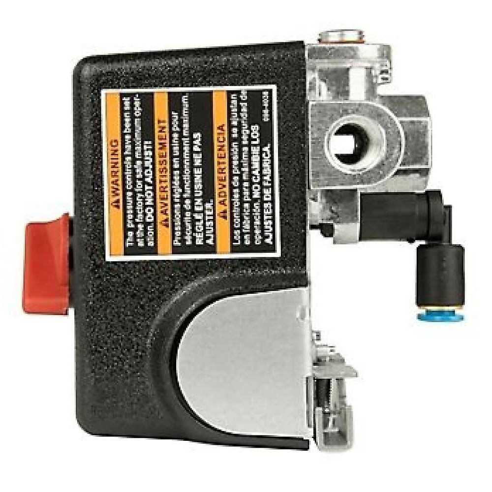 The DEWALT 175 PSI pressure switch DXCM034-0199 is part of the large line of genuine replacement parts. A pressure switch regulates air pressure in the compressor. Replace a pressure switch with a new pressure switch if the compressor motor is cutting out or not turning on at the proper PSI. This pressure switch is factory preset for 145 PSI kick-on and 175 PSI kick-off. Factory preset of the pressure switch is for 145 PSI kick-on; 175 PSI kick-off. 4 port switch with bleeder. 1/4 in NPT ports on the 175 PSI pressure switch. 1/4 in OD tube bleeder valve on the 175 PSI pressure switch. Use on any 175 PSI max air compressor.