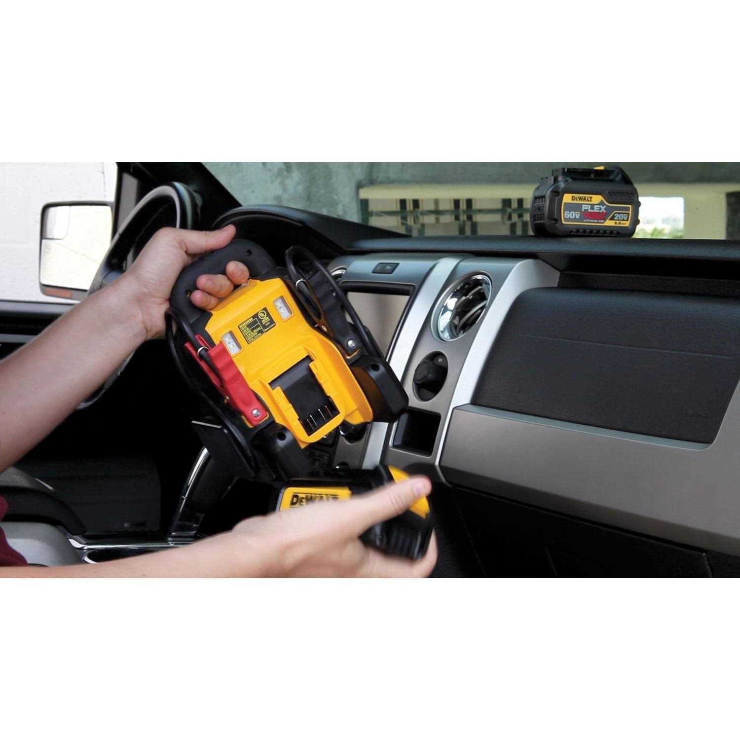 Up to 20 Amps of boosting power. Can jump start 8 cylinder vehicles in minutes. Comes with 2 : 3.1 Amp USB ports to power up personal electronics. Two powerful LED lights for clearest view of the job. Three button control panel with translucent main power button. LED status indicator back lit main button provides job status. Works with any DeWALT 20V lithium battery packs. Compact and lightweight design for ease of storage. One button battery boosting with LED indicator. On board clamp and cable storage.