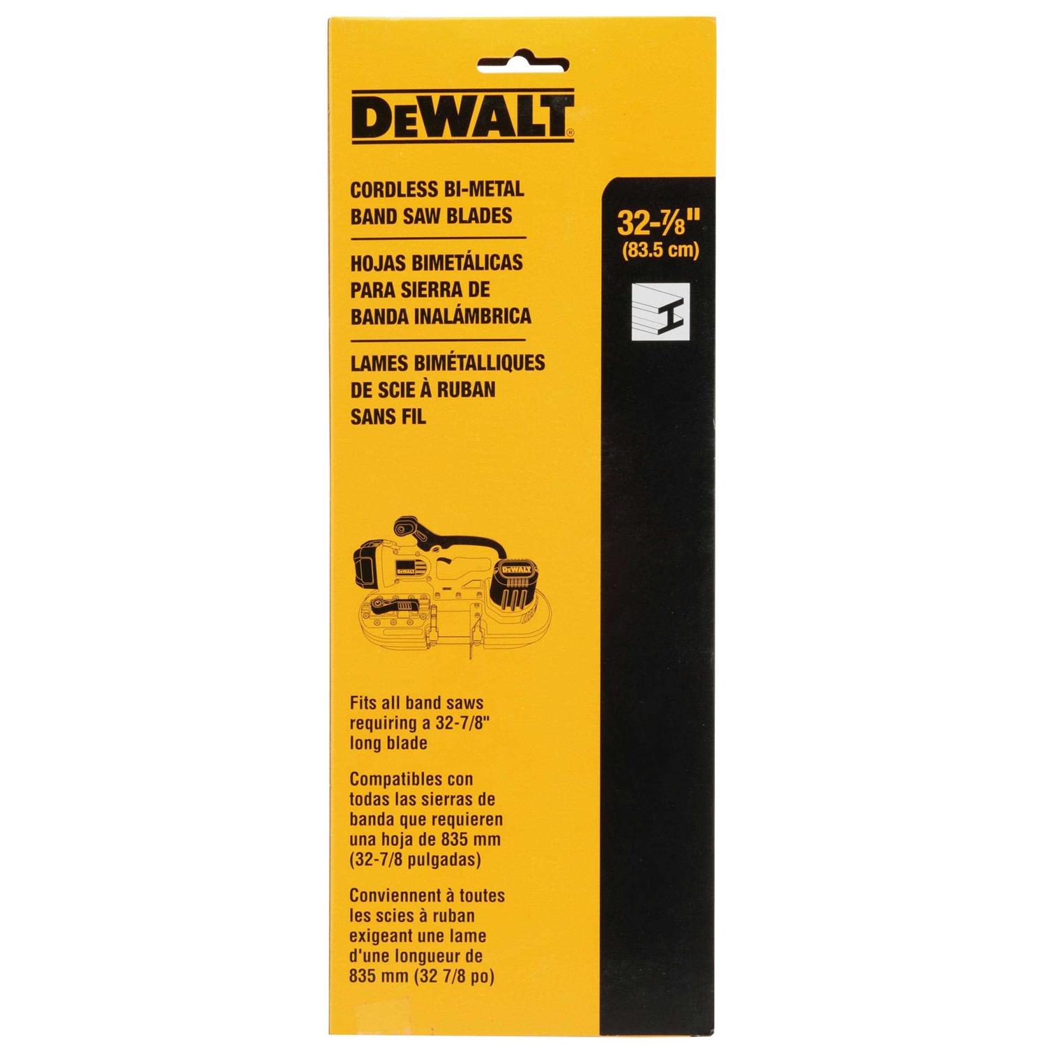 Invest in a rugged and durable blade set that will help you cut through the toughest of jobs, with these DeWalt Cordless Bi-Metal Band Saw Blades. These 32-7/8 inch Cordless Bi-Metal Band Saw Blades is all you need to cut through even the strongest materials, and complete that big project that you’re working on. They’re designed for use with all band saws requiring a 32-7/8 inch long blade and are made of flexible bi-metal for maximum durability and long life, sure to make your next cutting job a little bit easier. Ideal for use by professionals out in the field. Pick up these 32-7/8 inch Cordless Bi-Metal Band Saw Blades today, and see the difference it makes on your next cutting job!