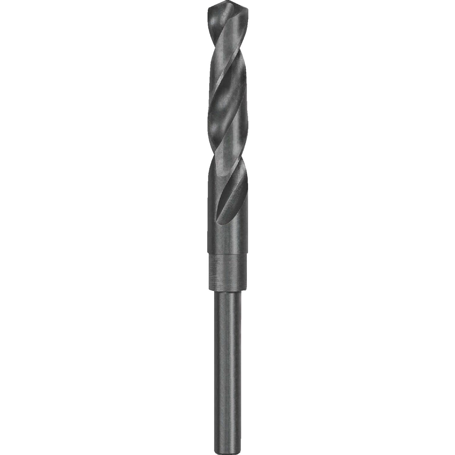 Black oxide coated for greater wear resistance; split point drills on contact and prevents walking. Parabolic flute design improves chip Ejection in metal and wood drilling applications. Helix is 31 degrees which minimizes the over aggressiveness of a true parabolic flute. Reduced shank black oxide drill bits from DeWalt are ideal for drilling holes larger than 1/2-inch with a standard 1/2-inch drill. These bits can be used in general applications including drilling in non-ferrous metal, wood, and plastic. Typically, the larger sizes are used in metal.