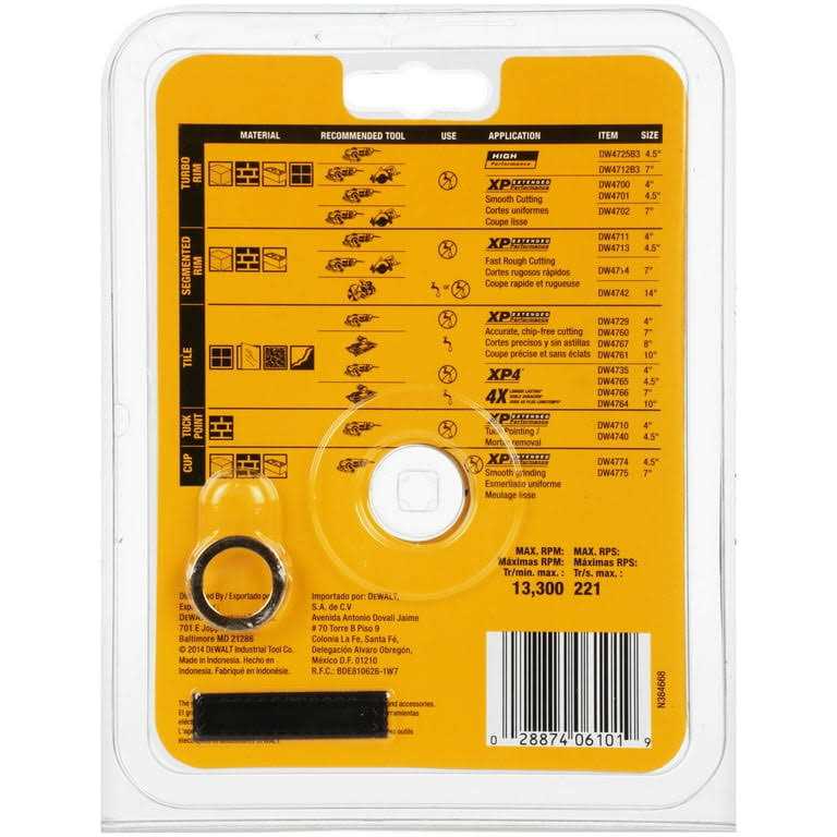When you’ve got renovation or construction projects on the go it always pays off to have the right tools for the job. That’s why Dewalt offers this 4.5” Turbo Rim Blade for when you need to cut through tough materials. This blade works on bricks, concrete, blocks, tiles and more, so you’re always ready to smoothly cut through nearly anything. This diamond blade can operate wet or dry and is capable of running at up to 13,300 RPMs. This model also has an adapter so it can fit from 5/8” to 7/8” attachments.