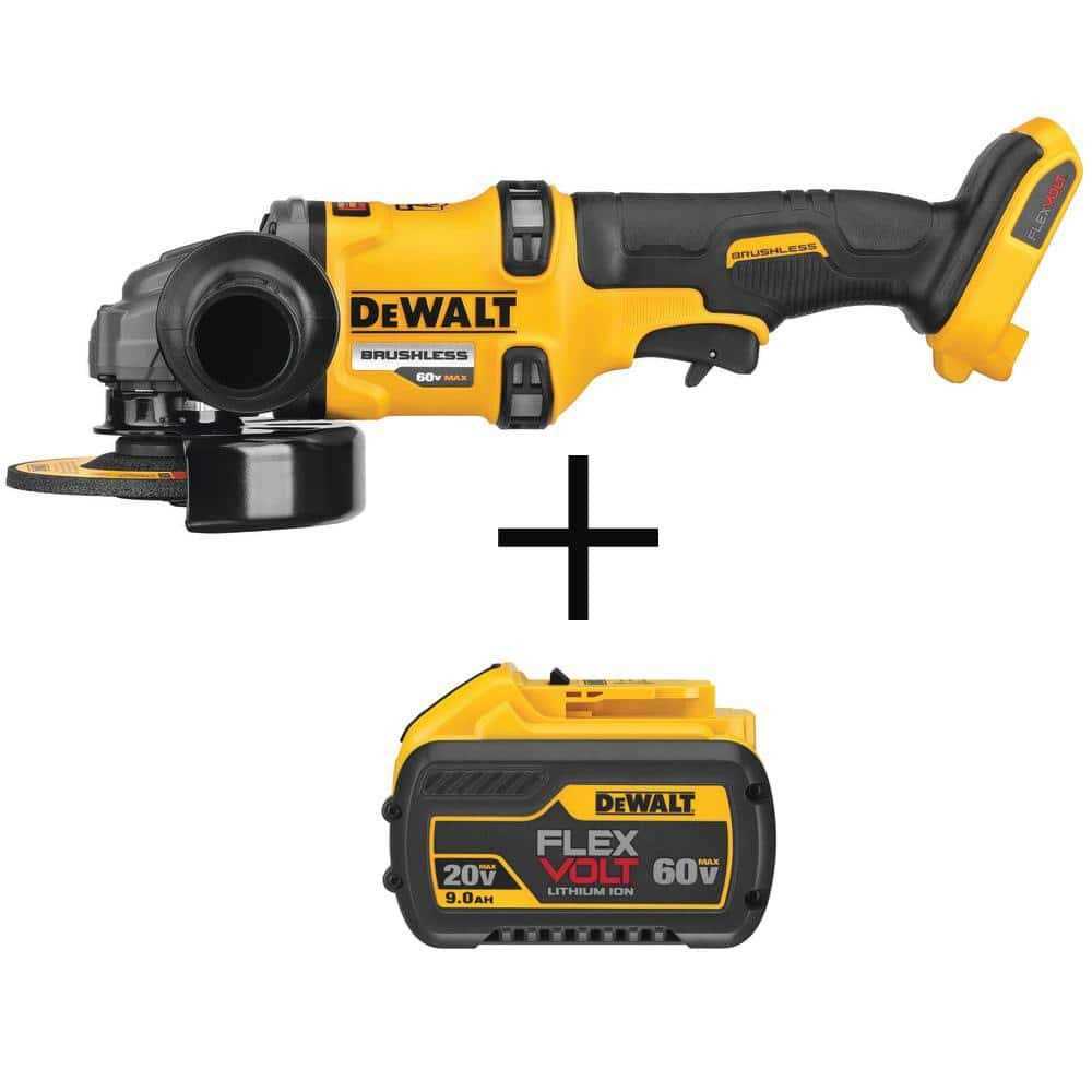 This grinder delivers 13 Amp power with a no-load speed of 9000 RPM. It’s part of our PERFORM and PROTECT product line to help keep users safe. The Kickback Brake engages when a pinch, stall, or bind-up event is sensed and shuts the grinder off. Battery and charger sold separately. The DEWALT DCB609 FLEXVOLT Battery pack changes voltage when you change tools. It Powers a new line of 60-Volt MAX Brushless tools and 120-Volt MAX Brushless tools. This pack is also backwards compatible with 20-Volt MAX tools and chargers.