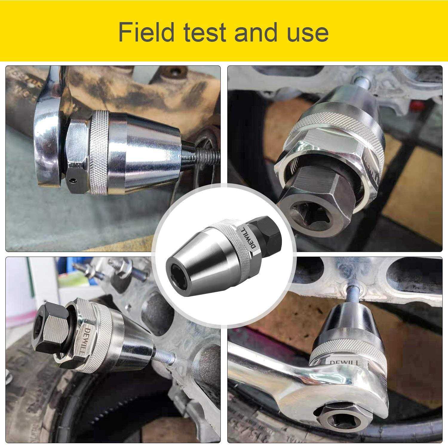 TOOL INTRODUCTION- Damaged bolt extractor 3/8″ inch drive. It is suitable for most drive tools and can be used with manual or pneumatic impact wrenches and ratchets as well as adjustable wrenches and flat wrenches. Heat treated alloy steel is very durable and chrome-plated, will not be damaged by high-strength work, and will add lubricant to the internal rotating threads to provide better protection against rust and wear. OPERATIONAL GUIDANCE- Simple operation does not need to be considered. Place the stud extractor on the stud and turn the bottom hex flat nut counterclockwise to tighten the jaws. After the jaws hold the broken bolt or stud firmly, continue to rotate the stud counterclockwise until it is removed.Then release and separate them in a clockwise direction. EFFICIENT & VERSATILE- This stud removal tool is easy to operate and can help you get more rest time, whether it is the exhaust manifold, fuel plug, broken bolts, or broken, painted, rusted fa