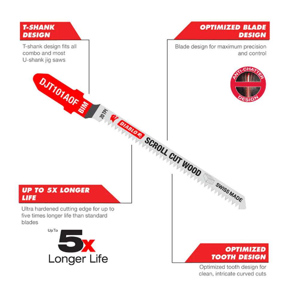 Diablo DJT345XF5 5/10 TPI Bi-Metal T-Shank Jig Saw Blades