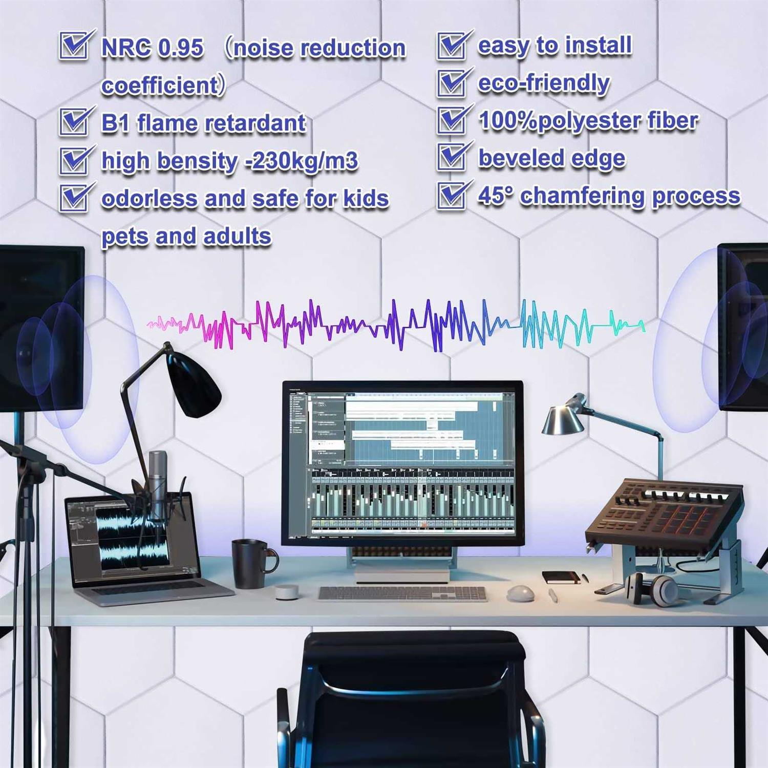 【Easy to and Install】High density sound proof foam panels not only enhance the acoustics of the room, but also create different styles of decorative wall art in your favorite spaceThe biggest difference with other acoustic panels on the market is that our panels come with self-adhesive.Just peel off the protective film and stick it to the walls ,door and ceilings. 【Safe and Eco-Friendly】Soundproofing Panels made with 100% Polyester Fiber, high density is better,non-toxic and formaldehyde-free, which have an great advantage of reducing and absorbing noise. Safe to breathe and touch,it’s safe for adults, kids, and pets! 【Wide Applications】Excellent acoustic treatment,These acoustical wall panelsls are multi-purpose, it can be used for professional studios, rehearsal rooms, concert halls, podcasting, vocal booths, home studios, offices and more. By deadening unwanted sound using absorption panels, you can make other sounds much clearer.”