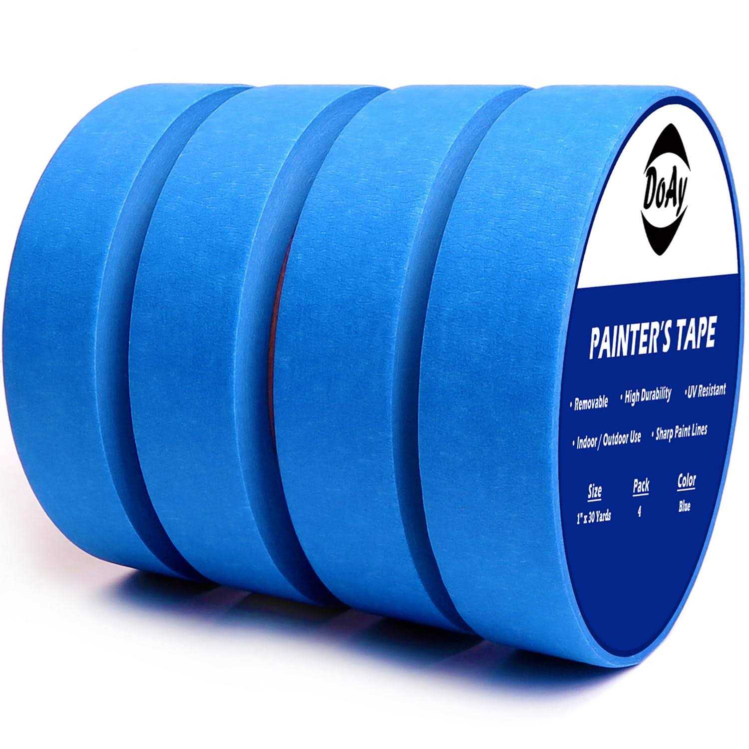 DOAY Blue Painters Tape 1 Inches x 30 Yards – Multi Surface Use – 120 Yards Total – 4 Rolls
