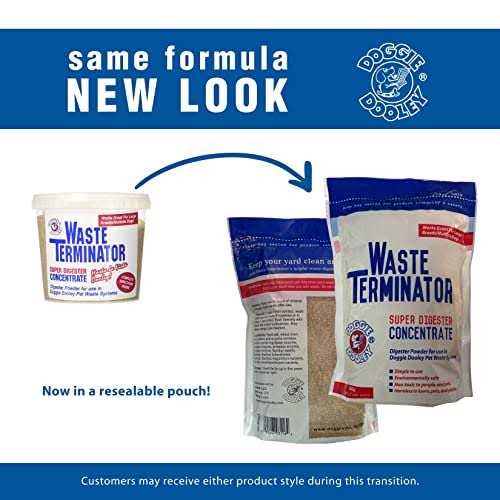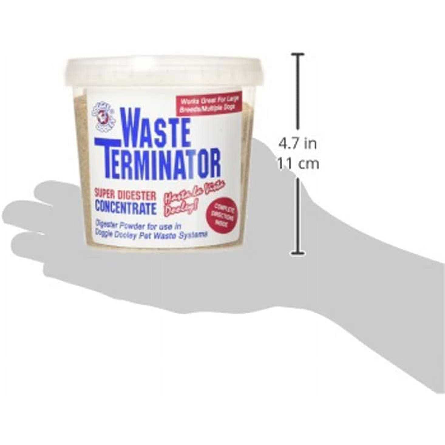 Pooper Scoopers by Doggie Dooley. Details:360 grams of the Waste Terminator packaged in a handy re-sealable plastic tub. Our premium Digester Powder, contains twice the amount of enzymes and bacteria per scoop compared to our regular brand. Works will with larger breeds or for homes with multiple dogs. Harmless, non-toxic, helps control pet waste odors. Contains 52 tablespoons, about a one year supply.