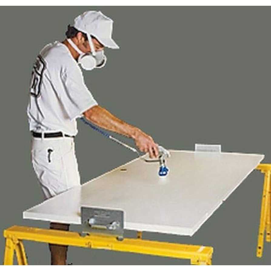 - Patented door finishing system, no need to stoop or bend. Deck, spray and stack, it’s as easy as that.