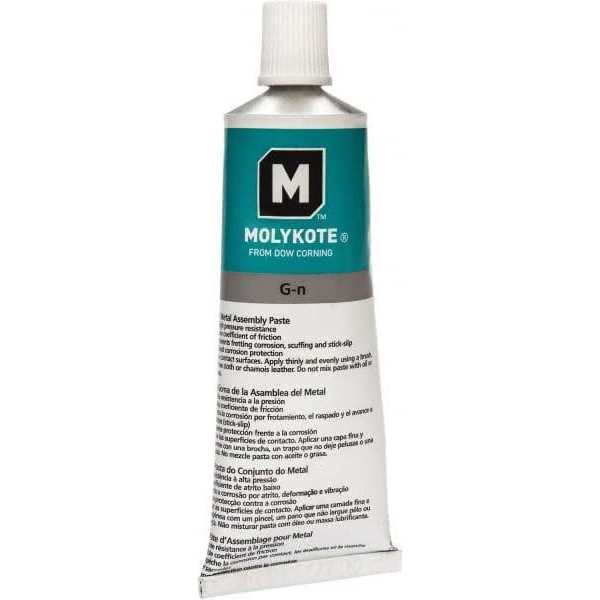 Molykote G-n Metal Assembly Paste is a multi-purpose, heavy duty lubricating paste containing a blend of molybdenum disulfide and white solid lubricants in a mineral oil. It helps prevent galling during run-in, helps extend the service life of moving parts, and helps protect against fretting wear and corrosion as well as welding of static joints. Molykote G-n Metal Assembly Spray is a high-performance paste in aerosol form. It is particularly effective as a running-in lubricant. This product features a low coefficient of friction immediately upon application, without burnishing.