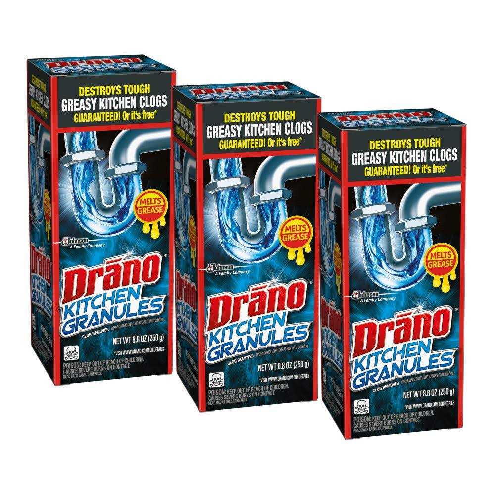Drano Kitchen Granules Clog Remover, 8.8 oz (Pack of 3)