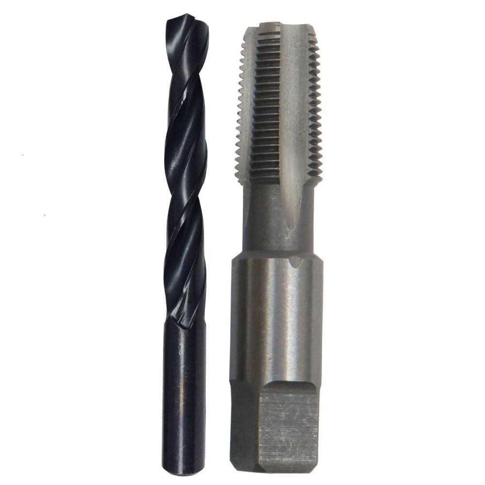 - Set contains matching NPT pipe tap and high speed steel drill bit