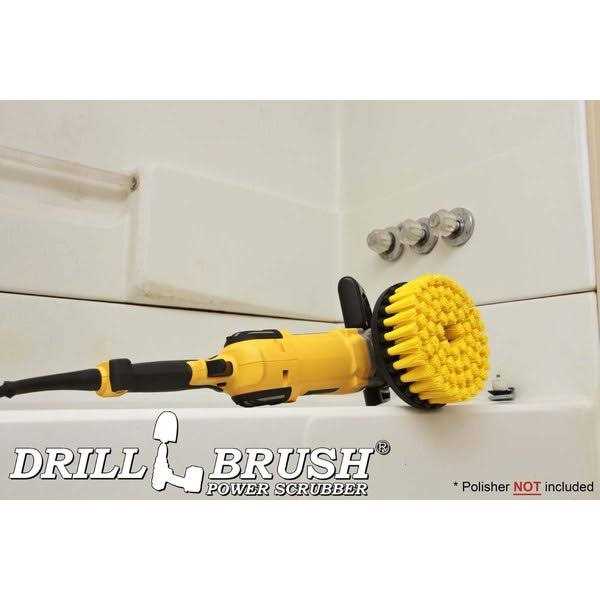 Drillbrush Bathroom Accessories – Cleaning Supplies – Scrub Brush – 7in – Medium Yellow Bristles – Variable Speed Polisher – 5/8 x 11 Threaded H