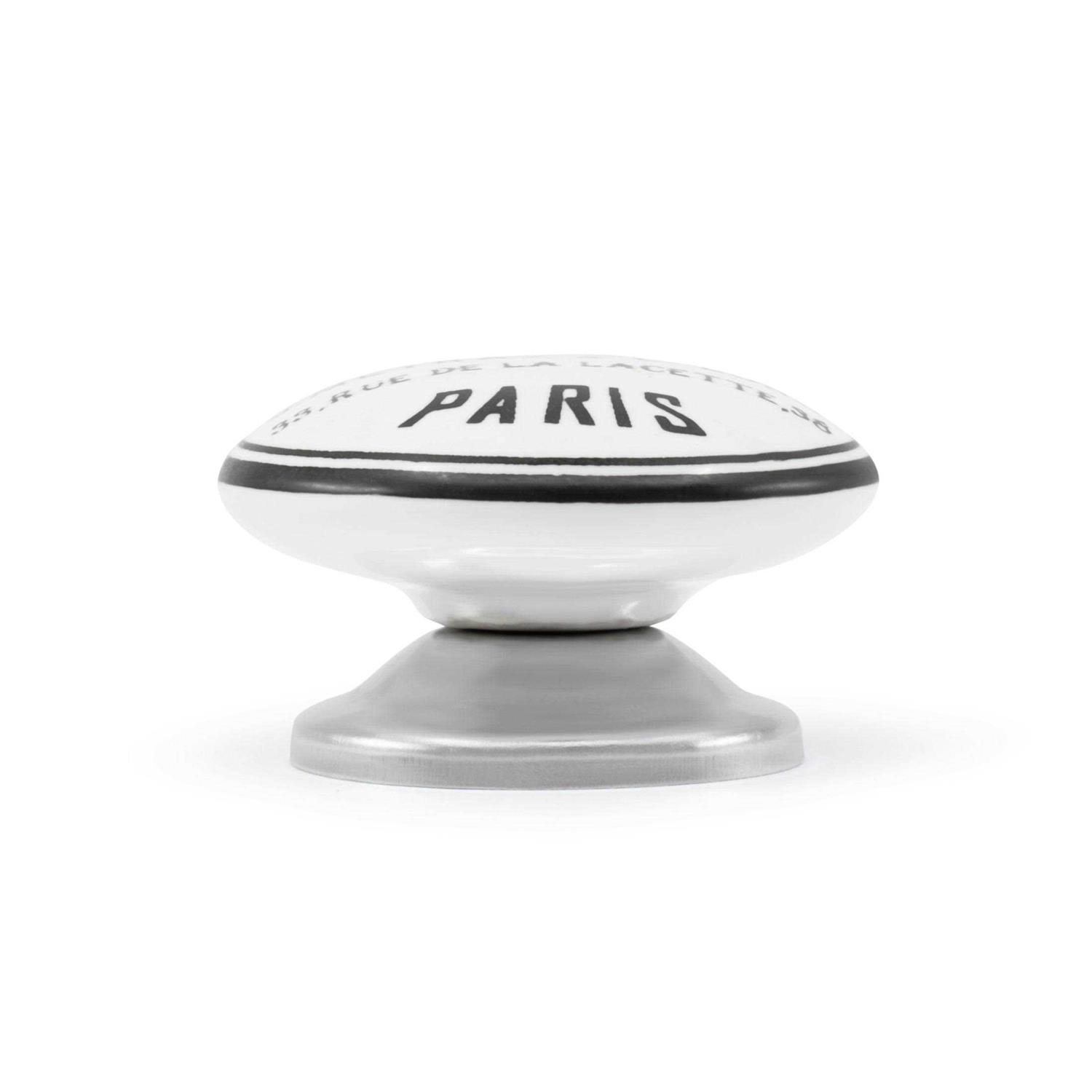 Dritz has a wonderful line of Home Hardware items that will help you out with all your home decorating projects. DIY Ceramic Knob Paris Black/White- Round knob with French captions in black, approximately 1.5″x 5/8″, with a silver base plate. Includes two screws.