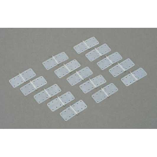 Du-Bro Small Nylon Hinges are precision molded, inspected and assembled with locked in hinge pin. Flash free, simple to install. Hinges have holes on each side for maximum loading power. Ideal for gliders and small aircraft. Fifteen hinges per package.