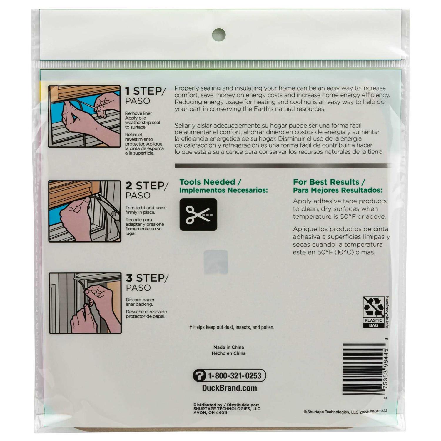 Cracks and gaps around windows and doors can cause drafts to come into your home, leading to high heating and cooling costs. Duck Brand Storm Door and Window Replacement Weatherstrip Seals are made with durable and flexible material, allowing them to stand up against extreme temperatures that cause other seals to freeze or crack. Designed specifically for storm doors or windows, these replacement seals won’t cause excess friction like traditional weatherstrip seals and form a barrier against the outdoor air, as well as dust, pollen and insects during the warmer months. Plus, they feature self-adhesive material for easy installation. Self-adhesive seal for easy installation Heavy-duty pile blocks cold air and moisture Seals the perimeter of storm doors and windows Allows for easy sliding of storm doors and windows with minimal friction