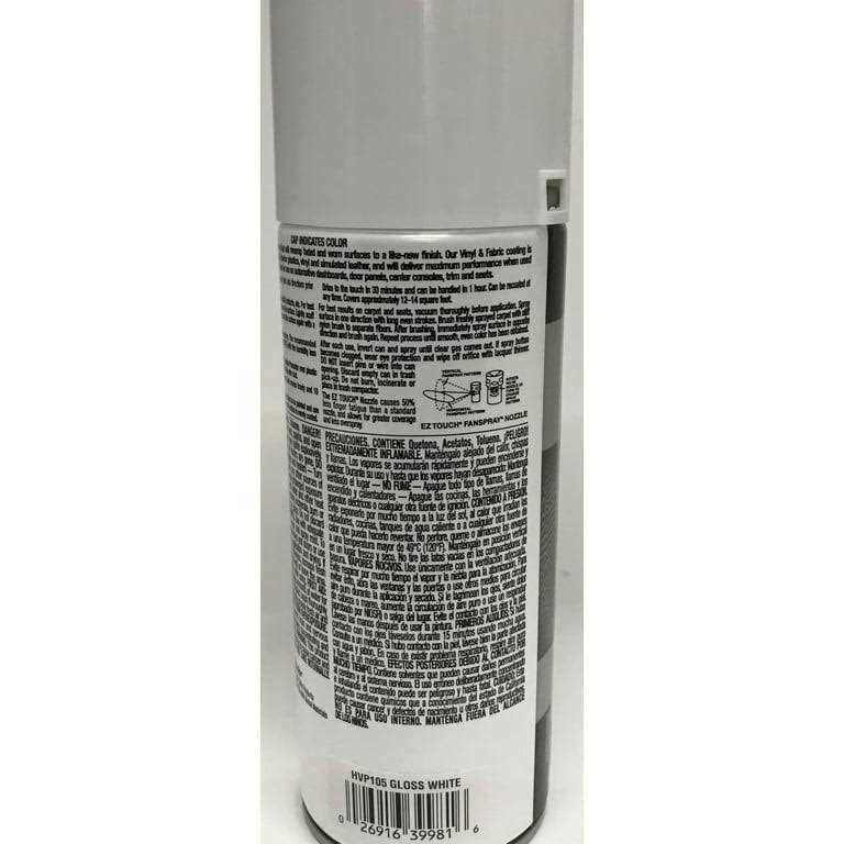Six 11 oz. cans of Duplicolor White Vinyl and Fabric Paint. Part # HVP105 Restore or customize your interior vinyl seats, dash boards, door panels, shifter boots and consoles with Dupli-Color Vinyl & Fabric Coating. Formulated with a maximum adhesion promoter so theres no need for primer, Dupli-Color Vinyl & Fabric Coating wont crack, peel or chip.