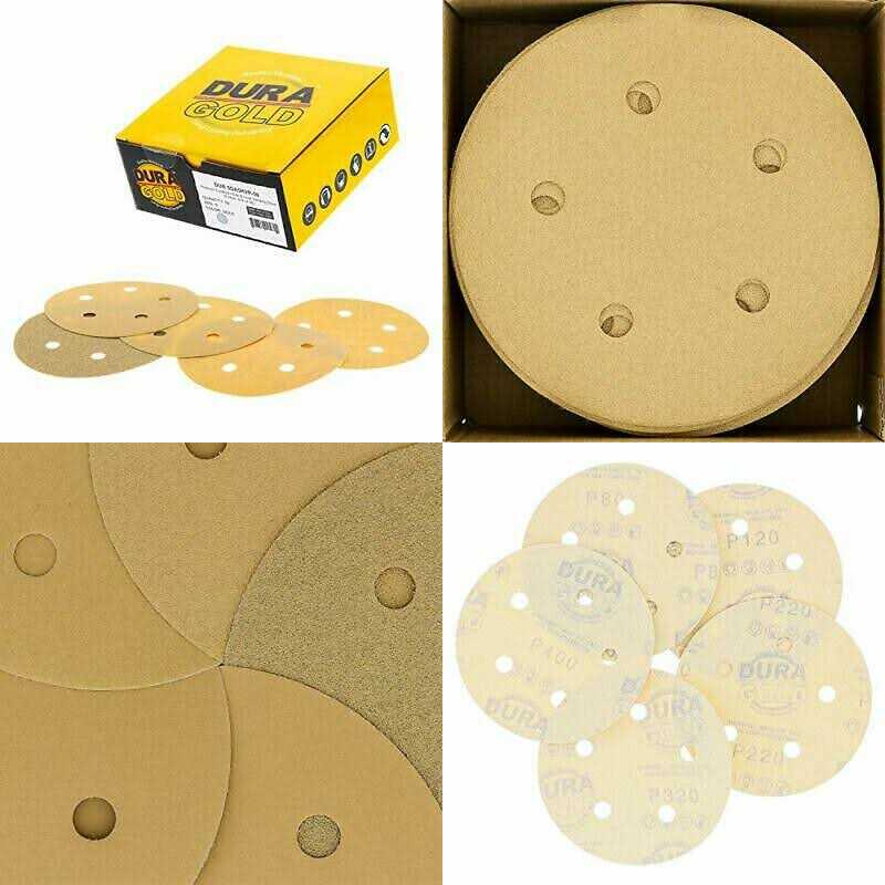 Be the first to review “Dura-Gold Premium Grit 5 inch Gold Sanding Discs 8-Hole Dustless Hook and Loop for DA Sander”