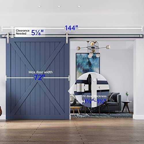 EaseLife 12 ft Brushed Nickel Sliding Barn Door Hardware Track Kit,Basic J Pulley,Heavy Duty,Slide Smoothly Quietly,Easy Install