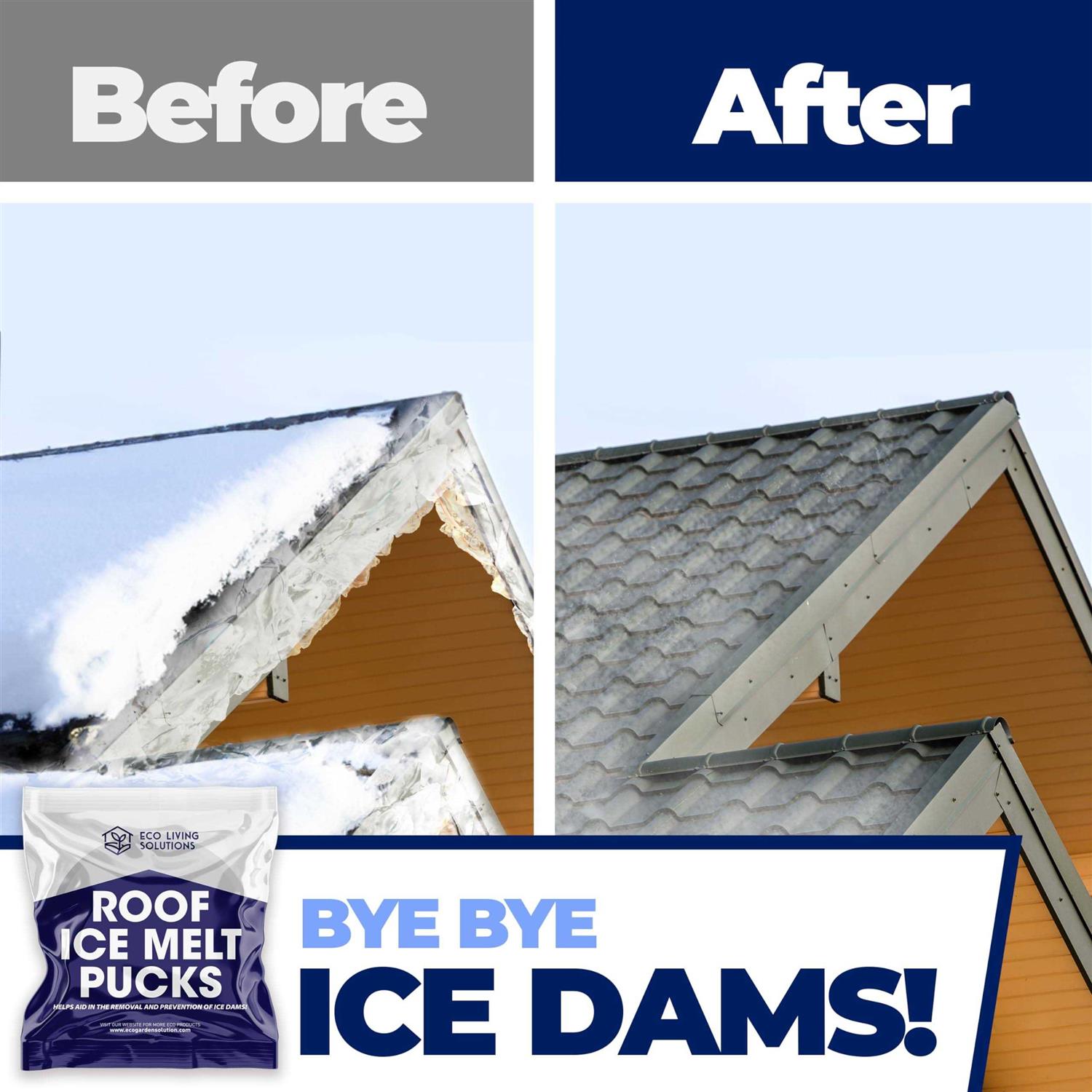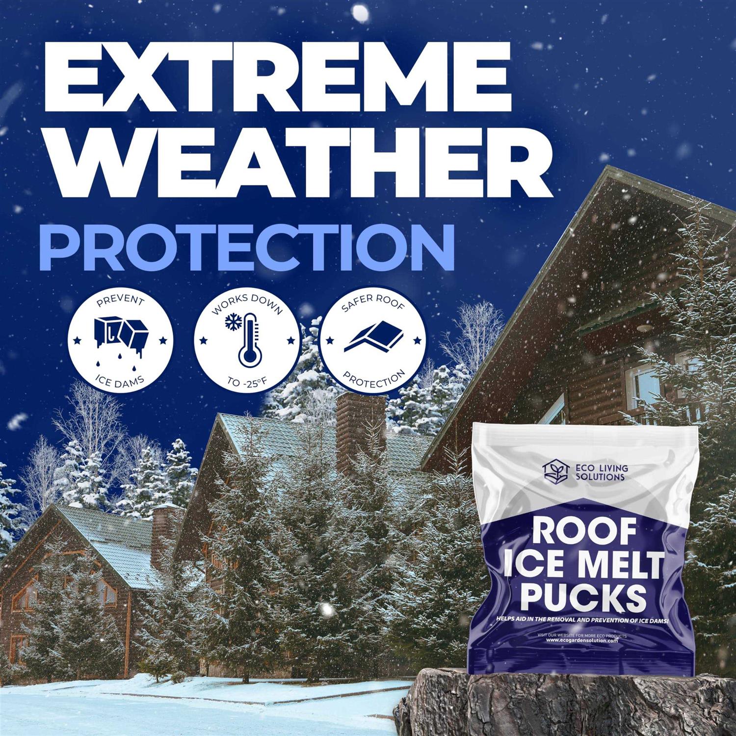 Eco Living Solutions Roof Ice Melt Pucks Calcium Chloride Pucks | Prevent Damage to Roofs from Ice Dams | Roof Melt Tablets | Works Down to -25 °F (