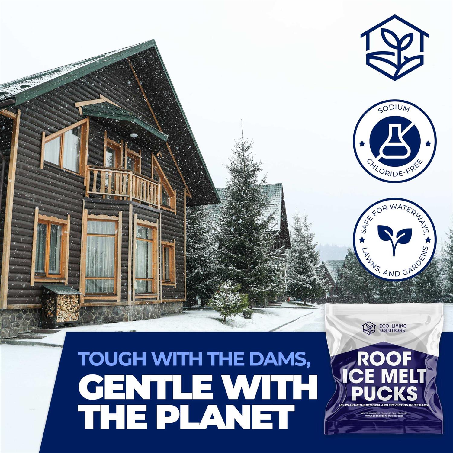 - Safely throw the pucks onto your roof from the ground, avoiding climbing onto your roof during winter CLIMATE FRIENDLY