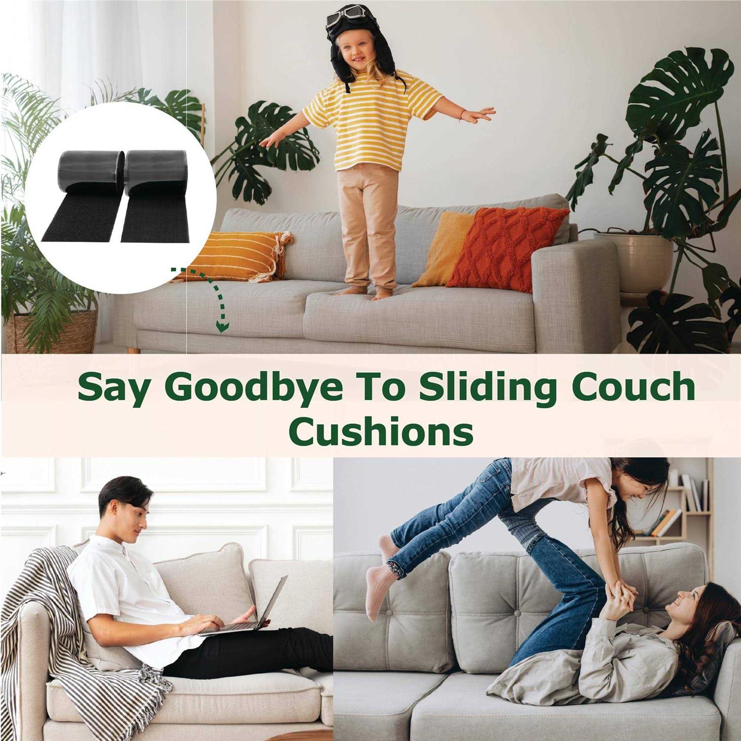 Keep Couch Cushions From Sliding- These hook and loop couch cushion grip tape firmly secure your cushions and prevent your sofa cushions from slipping Strong adhesive support- Great adhesive strength. The self-fastening tapes has strong durability and anti-slip effect for different sofa types. It also works well on most mattresses, rugs, sofa beds, carpets etc Simple installation- ECOHomes couch cushion grip non slip pads are easy to install. Simply cut the length you need and paste the hook and loop tape on each side and you are done! Multiple applications- Use these grippers to prevent your sofa cushions, patio cushion, mattresses, mats and other things from slipping. It can also be used to firmly attach, fixing, securing or organizing objects around the house Customizable length- Simply cut out the self stick grip tape according to the length you require. The flexibility in cutting allows you to trim only what you need!