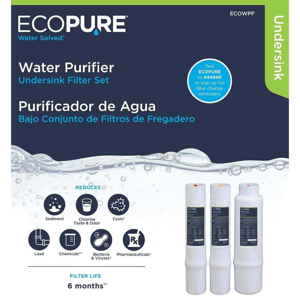 EcoPure Water Purifier Under Sink Replacement Filter Set (Fits System ECOP40) ECOWPF