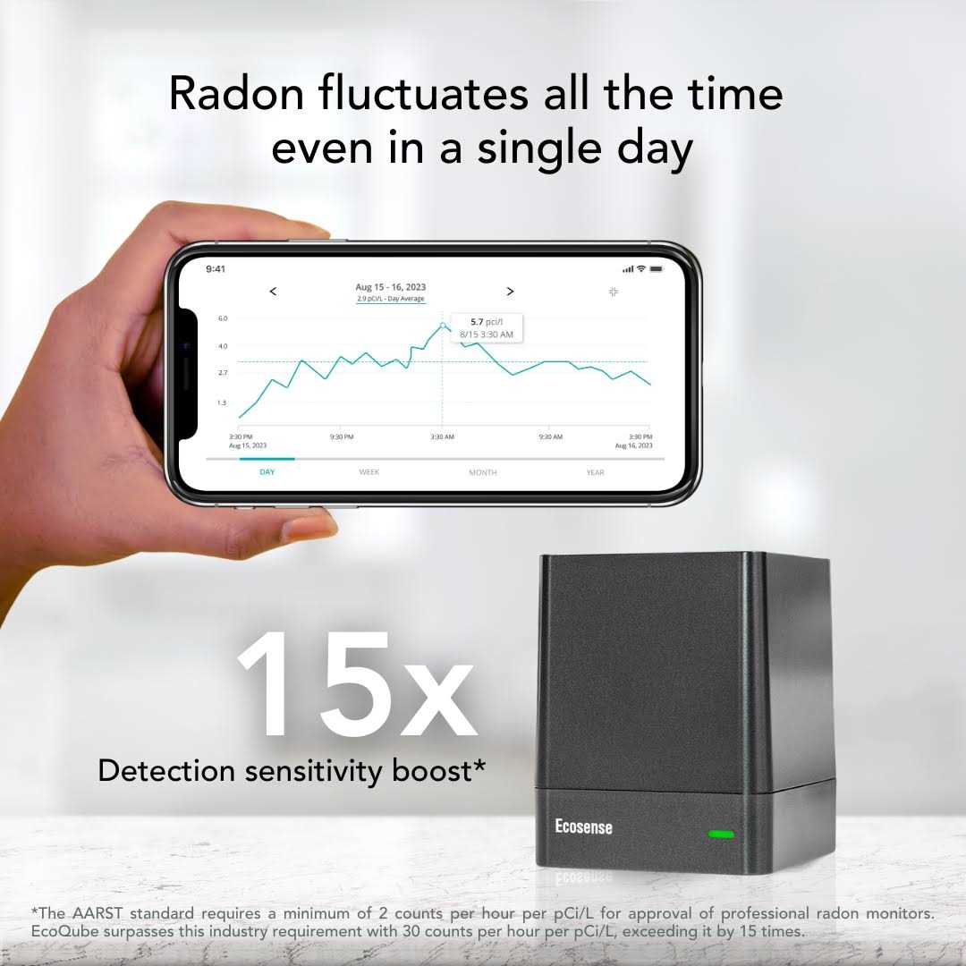 Ecosense EQ100 EcoQube Smart Continuous Radon Detector for Home