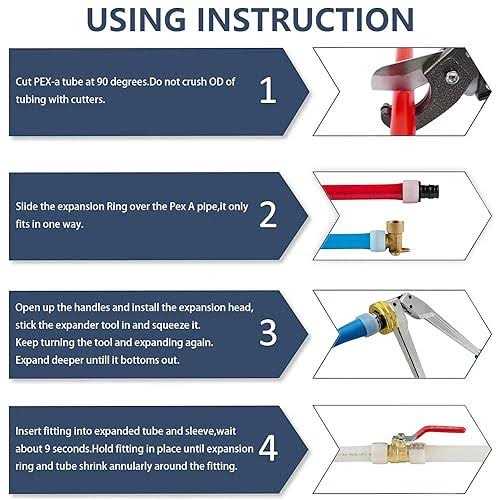 EFIELD 1/2-Inch 2 X100 ft PEX-A Tubing/Pipe (All in One) Red & Blue 200 ft, 30 Pcs 1/2″ Brass Expansion PEX Fittings- Elbow Tee Coupler (30 pcs), 1/