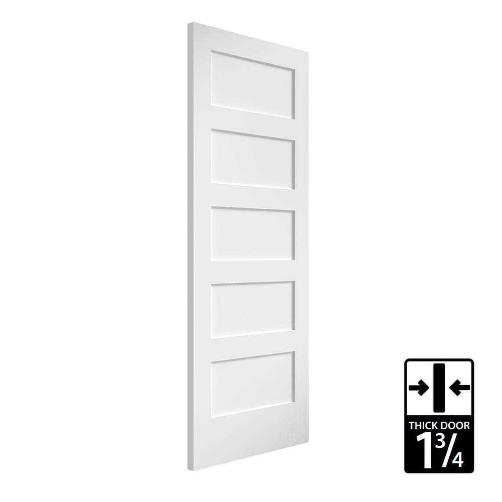 EightDoors 80 inch x 36 inchx 1-3/4 inch 5-Panel Shaker White Primed Solid Wood Core Door