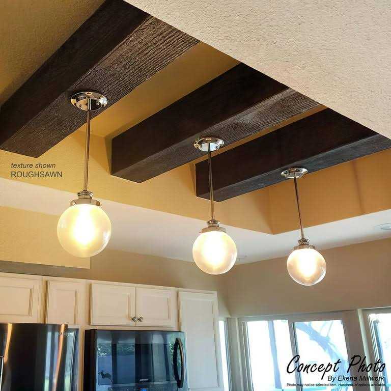 Our faux wood beams capture the rustic nature of authentic timber at a fraction of the cost and installation time. These specialty hand-finished, lightweight high-density polyurethane beams are simple to install over a wood block securely attached to a ceiling, wall or doorway. Our hand-crafted beams offer a green alternative to hard-to-find real timber, with unmatched authentic wood look. Our beams boast deep, detailed wood textures molded from real wood, and our custom finishes offer limitless possibilities, enabling you to choose just the right color and texture for your home. Enjoy high-end style, at an affordable cost. Faux wood beams offer design capabilities that real wood cannot. Because of its light-weight nature and ease of installation, you can easily create an eye-catching feature on vaulted ceilings or plain spaces. Beautifully breakup long hallways or open concept layouts. The hollow design also allows you to hide cable, pipes or make custom light features. For a luxury update, combine several beams together for a stunning grid pattern or custom truss. Cloak support beams, by covering them up with faux wood beams for an instant warm and luxurious look. With endless width, depth and height combinations; there is a beam to fit every project need. Save time and money with faux beams, because they do not require extensive labor and expertise, or expensive equipment to install. Our beams can be easily installed as a DIY project with standard tools and hardware. Plus, they are rot resistant and virtually maintenance free. To enhance the overall authenticity, Ekena Millwork offers optional rubber beam strapping to replicate the look of the heavy, forged wrought iron fastening hardware.