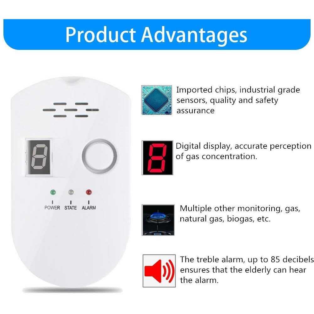 【Suit for Multiple Gas Leak Detection】: Eksahol propane gas detectors are suitable for detecting LPG(Propane and Methane), natural gas, coal gas, gas fuel, artificial gas, liquefied petroleum gas, liquefied natural gas, etc. 【Suit for Multiple Scenes】: Eksahol natural gas detectors can be used as independent family alarm equipment, and also can be used as the front sensor of the alarm system. Widely Used for Restaurant, Hospital, Hotel, Oil Factory, Garage, Gas Station, etc. 【Powerful Quality & Functionality】: Natural gas detector adopting high-quality semiconductor calefaction type sensor. Gas leak detector visual and audible alarm function MCU intelligent. When the gas alarm detects a gas leak, the LED display concentration changes, and an alarm of 85 dB or more issues. 【Easy to Install】: Gas leak sniffer adopts Easy-to-install Design, can be used by plugging directly into the power socket to detect leaked gas. 【Warm Tips】: The system warm-up time is about 2-3 minutes. During this time period, the gas test will not work. You need to wait for the display to show 0 (the system enters the working state) before it can be tested normally.”