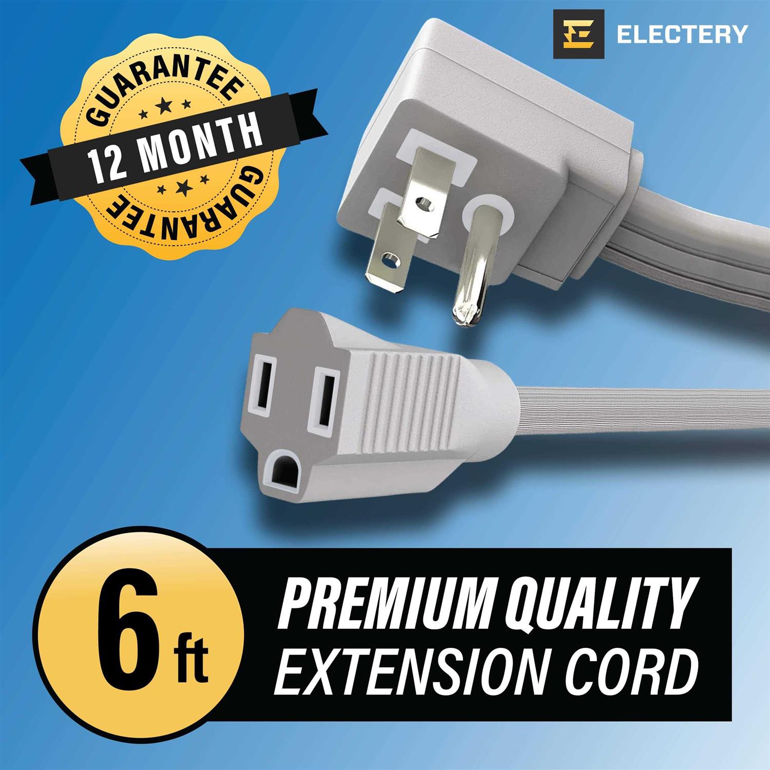 HIGH-QUALITY CORD- The 6 ft extension cord is made with thicker 14 AWG wire diameters which can handle more amperage, Get more from your heavy-duty 3-Prong extension cord with a high capacity of 1875 Watt rating (15 Amps, 125V). Link additional extension cords, power strips, surge protectors, plug adders, and devices up to a max of 1875W. 3 PRONG FLAT PLUG- The plug features a 90-degree right-angle design off to the downside. Grounded flat extension cord remains flush with the wall even in tight spaces allowing furniture, bookshelves, desks & appliances to be placed safely close to the wall to maximize floor space. Save a lot of space, and move furniture closer to the wall. HEAVY-DUTY/FLEXIBLE- The extension power cord is insulated with heavy-duty vinyl that’s soft, flexible, and fold-able and making it durable and resilient! It’s made strongly to protect the extension cord from external factors such as sunlight, moisture, and abrasion and resists cracking & breaking. Grip grooves on the side of the female end allow for easy connection and disconnection of the appliance cord. UNIQUE SIZE AND COLOR DESIGN-This extension cord comes in multiple lengths 3 ft. 6 ft. 9 ft. 12 ft. 15 ft. 20 ft. 25 ft. 50 ft. Special customized design with white inserts in the plug, to give a nice look even! light Gray PVC jacket blends into any Indoor environment, like any office workspace, for your computers, scanners, lighting, decorations, and appliances. A 3-prong outlet extension cord is compatible with any plug that requires a 3-pin male-to-female power connector. The cord is ETL-listed, to ensure that you get the best in safety and quality! The cord is ETL-listed, to ensure that you get the best in safety and quality!