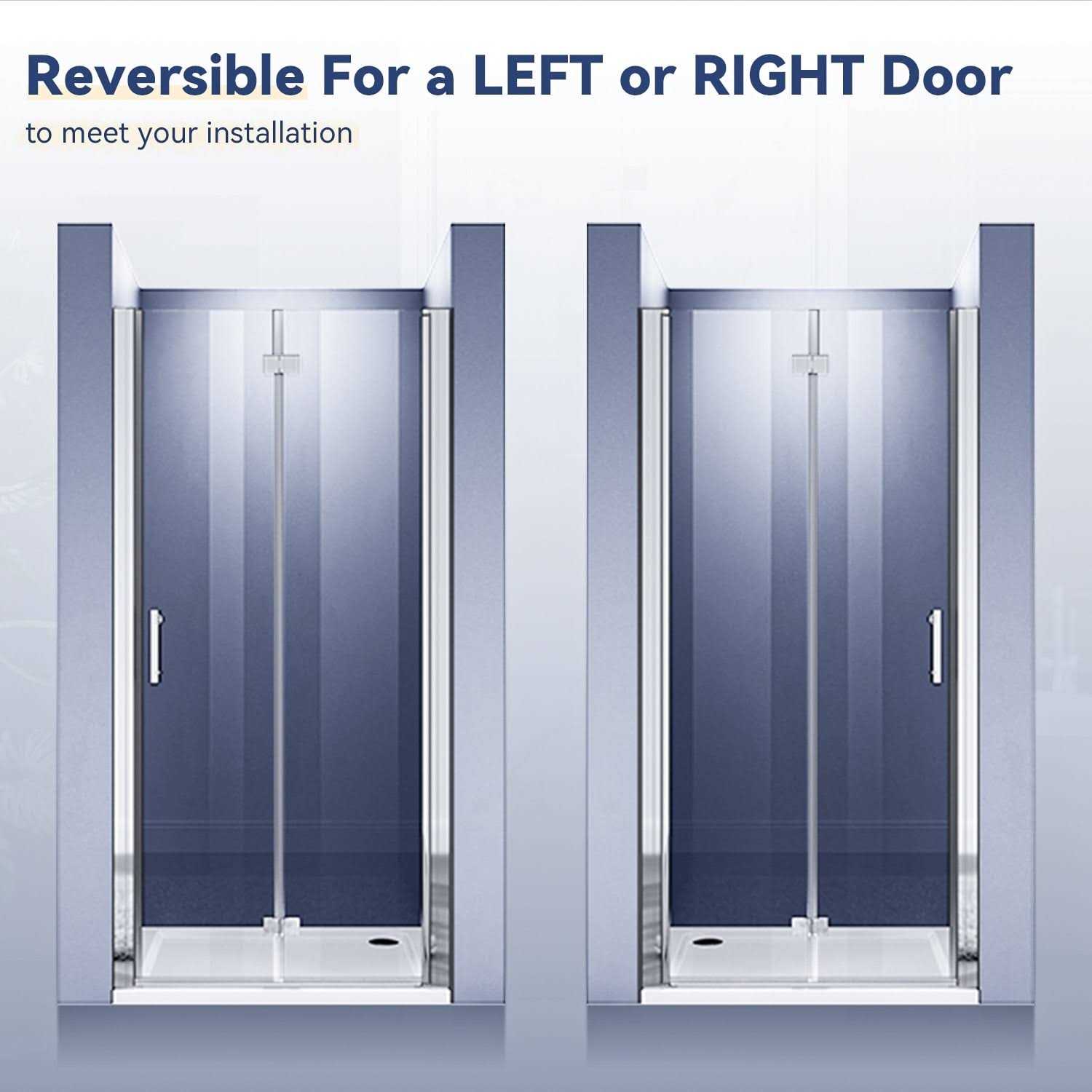 Experience the ultimate in elegance and functionality with our Frameless Shower Door. Crafted with 3/16 inch clear certified tempered glass, this shower door is strong, durable and offers superior protection against water leaks. Its universal fitting design ensures a perfect waterproof seal every time. With a reversible installation for left or right, and high-quality chrome hinges that can rotate 180, this shower door is easy to install and adjust. The vinyl magnetic shower door seal strips guarantee waterproof protection. When fully opened, the door overlaps, making it perfect for corners and saving space. Features: 3/16 inch clear certified tempered glass Universal fitting design for perfect waterproof seal Reversible installation for left or right High-quality chrome hinges that can rotate 180 Vinyl magnetic shower door seal strips Overlapping design when fully opened for corner spaces Available in 4 adjustable sizes: 30 inch W x 72 inch H, 32 inch W x 72 inch H, 34 inch W x 72 inch H, and 36 inch W x 72 inch H.