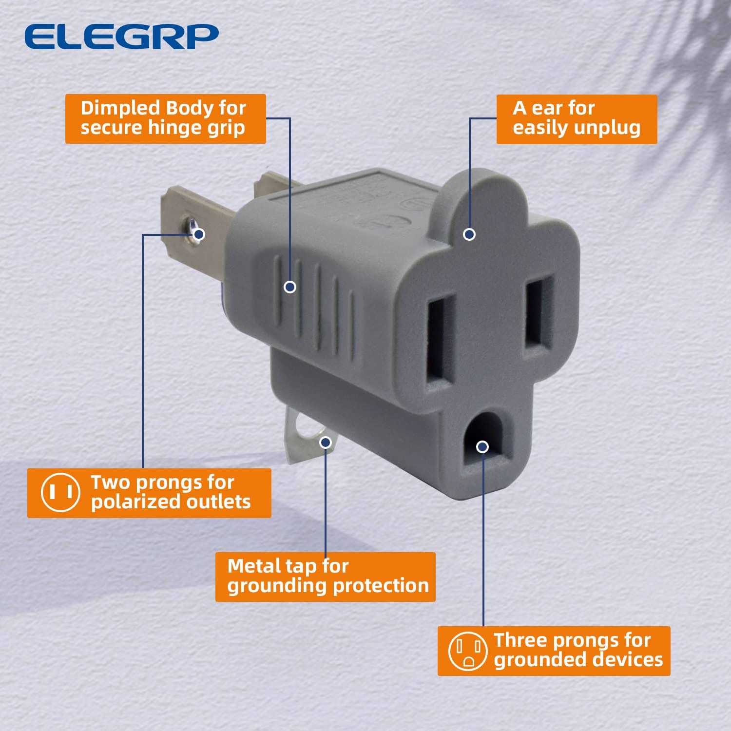 ELEGRP 2 Prong to 3 Outlet Plug Adapter Three Two Converters for Wall Outletss Polarized Grounding Plug ETL Listed 10 Pack Gray at MechanicSurplus.com