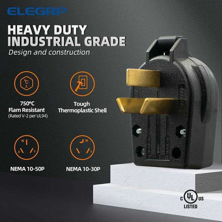 Be the first to review “ELEGRP 30 Amp/50 Amp 125/250-Volt 3-Pole/3-Wire NEMA 10-30P/10-50P Non-Grounded Straight Blade Angle Plug”