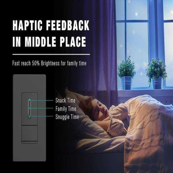 - Haptic feedback in middle place – fast reach 50% brightness for family time.